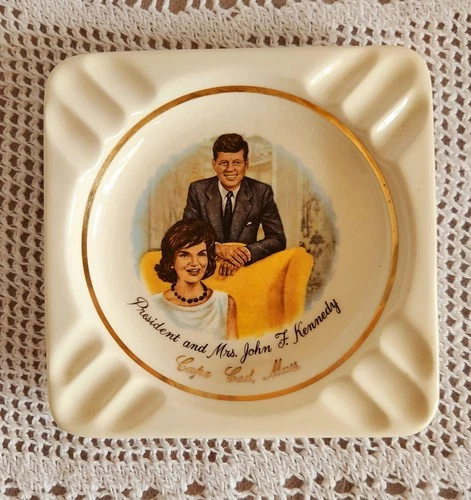 Vintage Commemorative President John & First Lady Jackie Kennedy Ceramic Ashtray