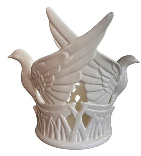 Large White Peace Doves Interwoven Ceramic Planter Or Candle Holder BEAUTIFUL