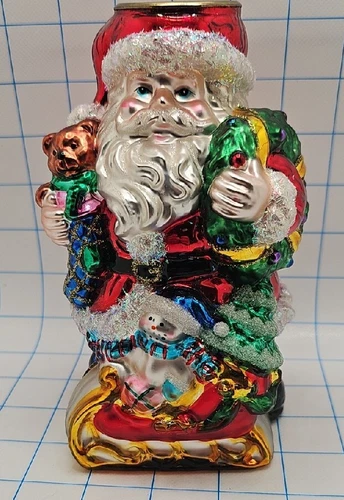 VTG Murcury Glass Santa Candle Holder Xmas glitter multi colored tea light