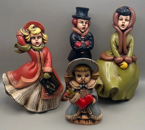 (4) Atlantic Mold Christmas Carolers Hand-Painted 1960s w/ HTF Child Figure