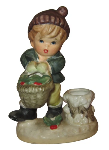 NAPCO VTG Candle Holder Boy Ceramic Figurine Basket Japan Xmas X8368