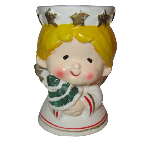 Vintage Christmas Angel Figurine Candle Holder Porcelain Ceramic Blushing Marked