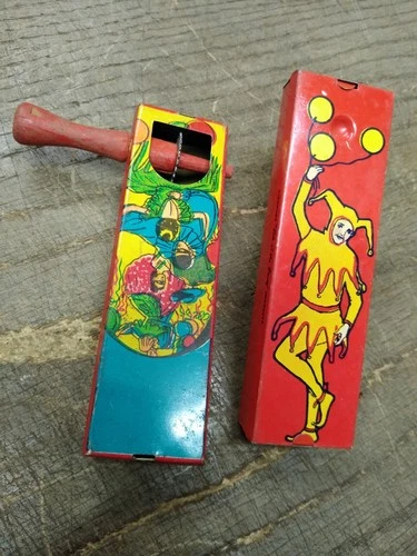 (2) Vintage U.S. Metal Toy Noise Party Makers Clown Dancer