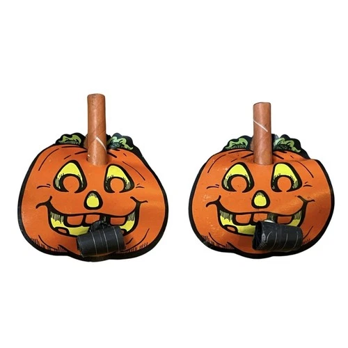 2 VTG Halloween 1980s Cardboard Blow Out Noisemaker Pumpkins
