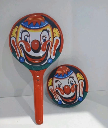 (2) Vintage Clown Tin Metal Party Noise Favors