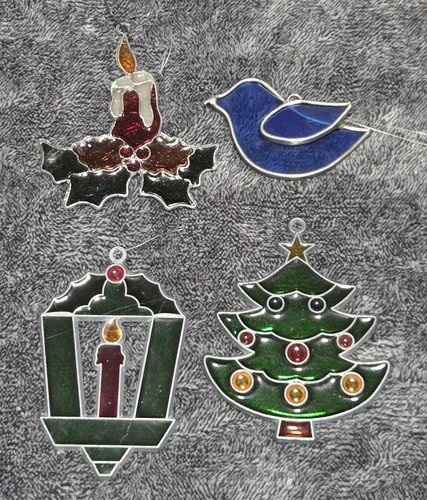 Vintage Christmas Stained Glass Ornaments Lot Of 4 Bird Tree Candles