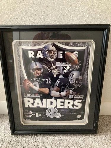 NFL RAIDERS SIGNED FRAMED POSTER, RICH GANNON, TIM BROWN, JERRY RICE W/ Cert