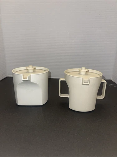Vtg 1960s Tupperware Creamer & Sugar Pictures Almond Colored Kitchen Home Decor