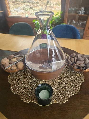 Simon Pearce Walden Rolling Wine Decanter with wooden base - never used