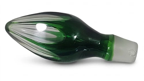Large Bohemian Emerald Green Cut to Clear Glass Decanter Stopper Hand-Blown 5"
