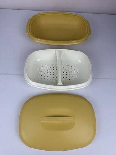 VTG Tupperware #1273-8 Harvest Gold 4 piece Vegt. Rice Steam Strain EUC