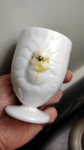 Vintage Westmoreland #603 Milk Glass Chick Emerging from Egg Cup w/handle
