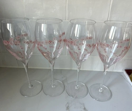 Laurent-Perrier Rose Floral Stemmed Champagne Glasses Set of 4, Hand Painted