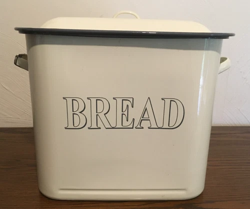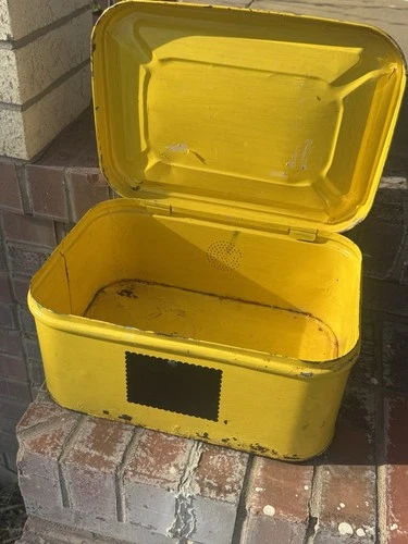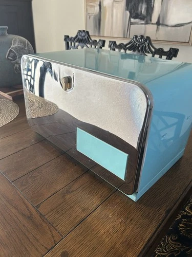 Vintage 1950’s 60’s Metal Bread Box Turquoise Chrome Lid & Shelf Great