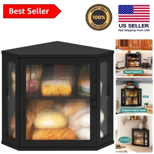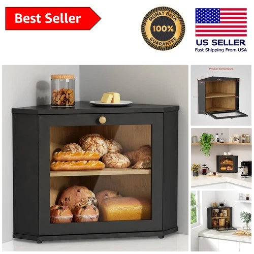 Large Capacity Black Bamboo Bread Box - Sturdy Storage with Acrylic Door Design