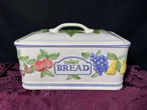 1996 Vintage Portugal Ceramics Bread Box With Fruit Pattern Preowned
