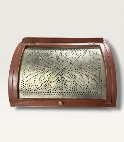 Vintage Wooden Bread Box Punched Tin Butterfly
