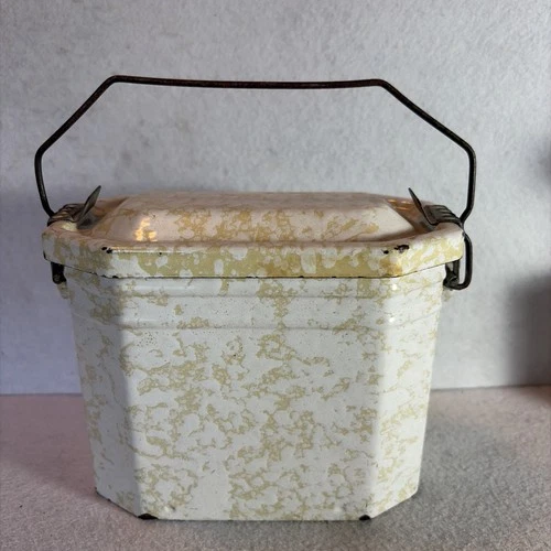 Vintage Enamel Graniteware French Lunch Pail Box With Handle & Insert