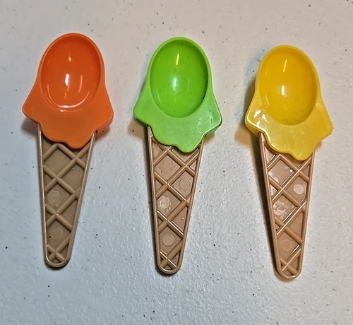 Three Plastic Child's Ice Cream Spoons; Ice Cream Cone Style