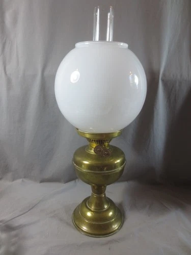 Vintage Brass Made In England Oil Lamp & Vintage Glass Round White Shade