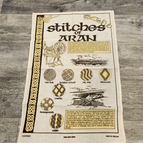 Vintage Stitches Of Aran Irish Tea Towel Made In Ireland Celtic Textile Heritage