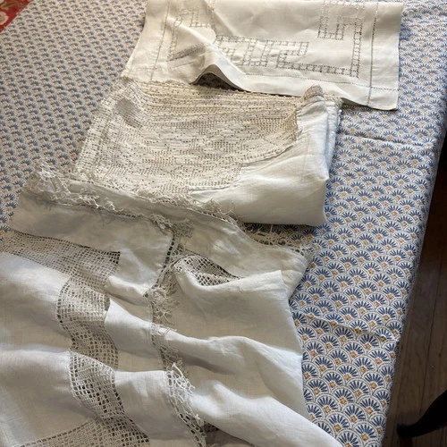 Antique Linen Textiles Runner Tablecloth Lace Handmade