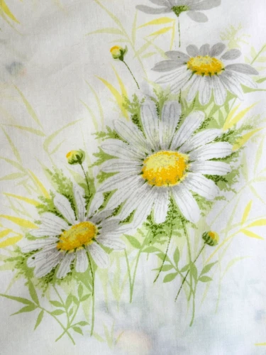 VTG 60'S MOD HIPPIE DAISY FLORAL WHITE&YELLOW HANDMADE QUEEN 33"LONG PILLOWCASE