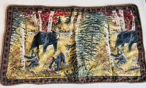 VTG MID-CENTURY 1960'S BLACK BEAR FAMILY CUBS FOREST PRINT PILLOW CASE SHAM KING