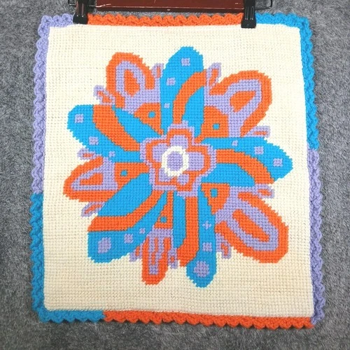 Cross Stitch Needlepoint Yarn Pillow Case Cover Zipper Closure Flower 17"x16"
