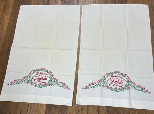 Embroidered Pillowcases Standard “The Lord Is My Shepard” Pair Of 2 Vintage