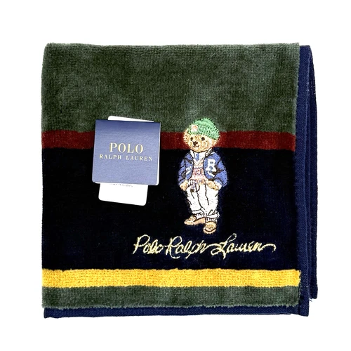 Ralph Lauren Polo Bear Towel Handkerchief Green Navy Stripe Japan Cute Bear New