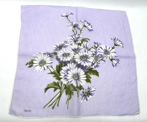 Vintage Colette Linen Handkerchief Purple Floral Daisy Signed 14x15 Hand Rolled