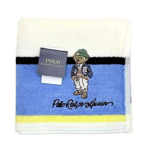 Ralph Lauren Polo Bear Towel Handkerchief White Blue Yellow Stripe Japan New