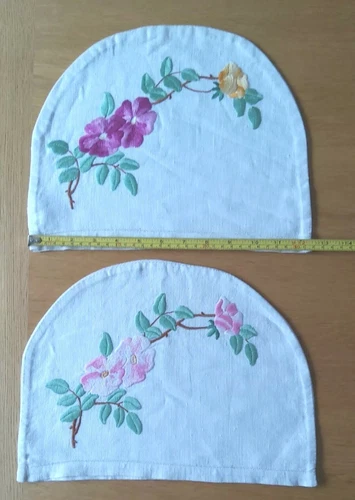 2 x Vintage Linen Tea Cosy Covers. Hand Embroidered 32cm x 25cm.