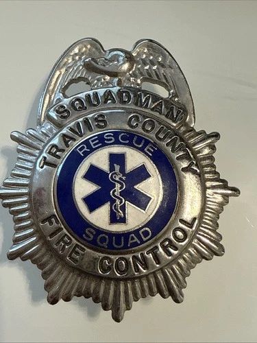Vintage TRAVIS COUNTY Squadman Fire Control Rescue Squad Badge