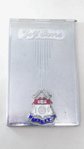 Alva Academy Vintage Golf Scorecard Holder Metal Case With Enamel Crest