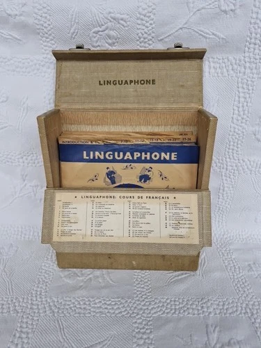 Vintage Linguaphone French Course - 45rpm Records in Original Case Collectible.