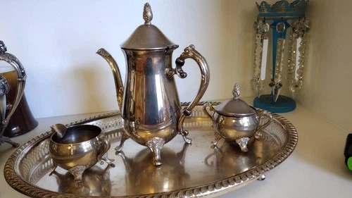 Leonard Silverplate 4 Pc. Coffee Set, Pot, Creamer & Sugar with cover REDUCED