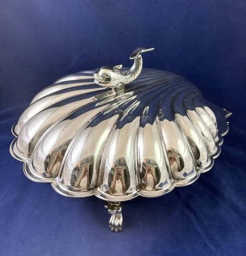 Art Deco Dolphin on Clam Shell Silver Plated Serving Dish