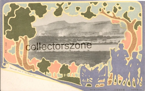 Russo Japanese War postcard Artillery Duel Yalu River unposted v2