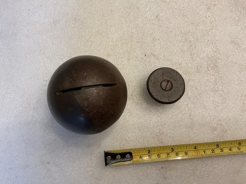 TRENCH ART OLD SIGNAL CANNON BALL RARE UNUSUAL HOLLOW SLOTTED ORIGINAL COVER