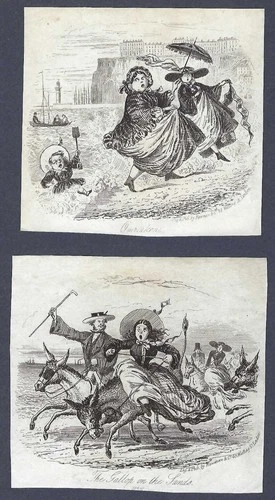 Two Victorian engravings cut from larger pages - Seaside theme