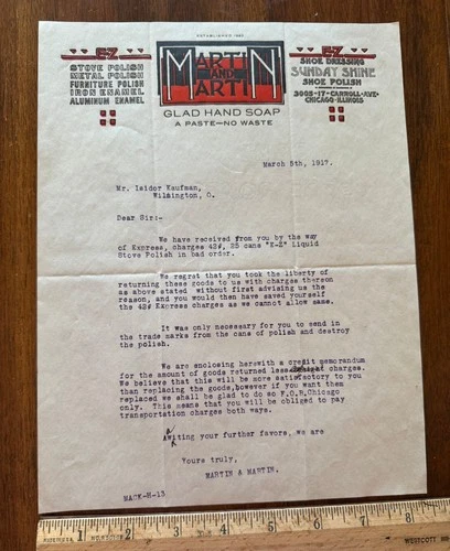 1917 graphic letterhead Martin & Martin Polish Soap Art Deco Chicago IL