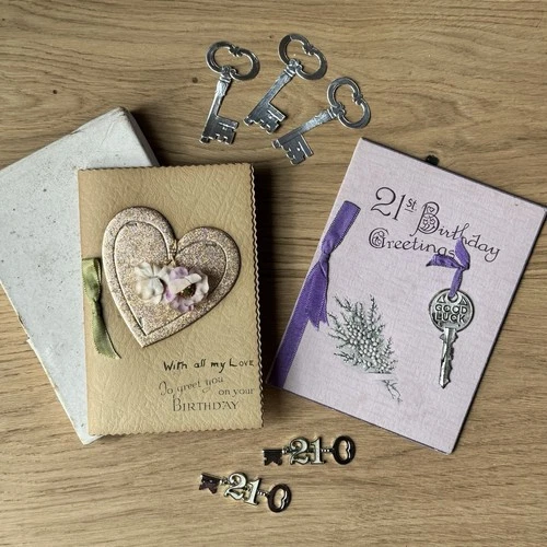 Vintage Greeting Cards Birthday c.1930’s With Box & Lucky Keys