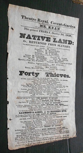 THEATRE ROYAL COVENT GARDEN ORIGINAL THEATRE POSTER 1828. approx 35 x 20 cms