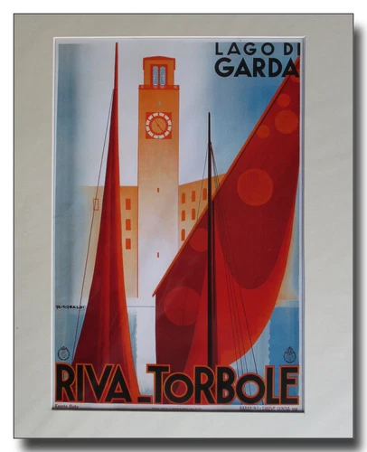 Riva Torbole ferry Lago di Garda framed repro art deco advertisement Riccobaldi