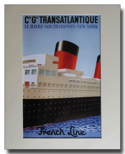 French Lines Transatlantique framed repro art deco poster Paul Colin 1949