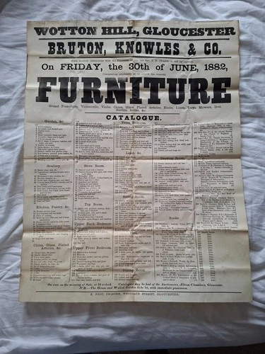ORIGINAL VICTORIAN AUCTION POSTER 1882,WOTTON HILL,GLOUCESTER, GLOUCESTERSHIRE