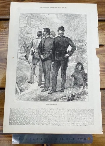 Royal irish constabulary (RIC) in Phoenix Park, Dublin- 1880. Original print.