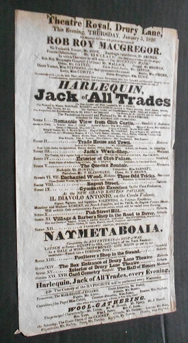THEATRE ROYAL DRURY LANE ORIGINAL THEATRE POSTER 1826. approx 33 x 18 cms